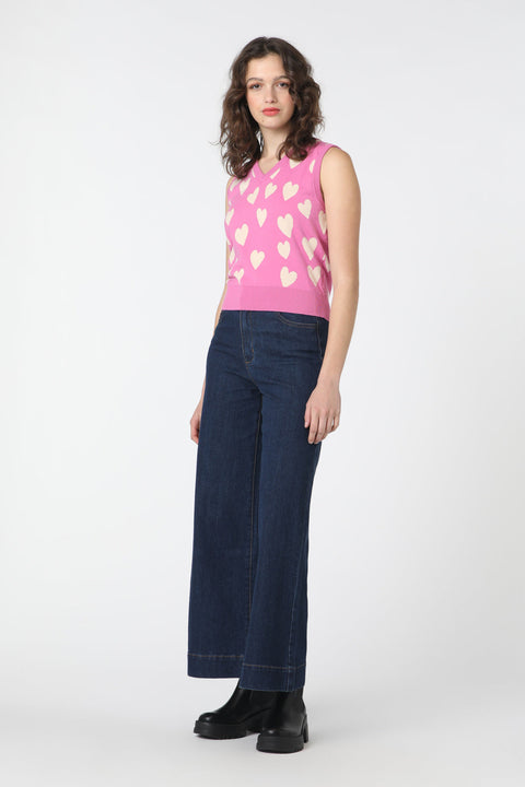 Prepare your wardrobe for a heart-to-heart with the Love Hearts Vest, where the mantra is “wear your heart on your… vest.” Hand-painted with care, our love heart styles are a testament to sweet, sartorial affection, capturing the essence of adoration stitch by stitch. This semi-fitted piece hugs you in all the right places, thanks to a generous stretch that ensures comfort is never sacrificed for style. Dive into a v-neckline shaping that flatters and frames, leading the eyes on a journey of fashion-forward affection. But it’s not all about the lovey-dovey; the rib-knitted armhole, V-neck, and hem add a touch of texture, proving that attention to detail is truly the way to the heart. Crafted from a soft cotton yarn, this vest isn’t just a garment—it’s a soft embrace, a wearable love letter that speaks volumes of your style narrative. For a piece that’s as cozy as a warm hug and as chic as a first date, the Love Hearts Vest is your wardrobe’s new sweetheart.