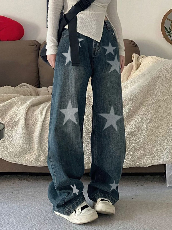 Trendy Design: The jeans feature a unique star print, adding a vintage and Y2K touch to your outfit.